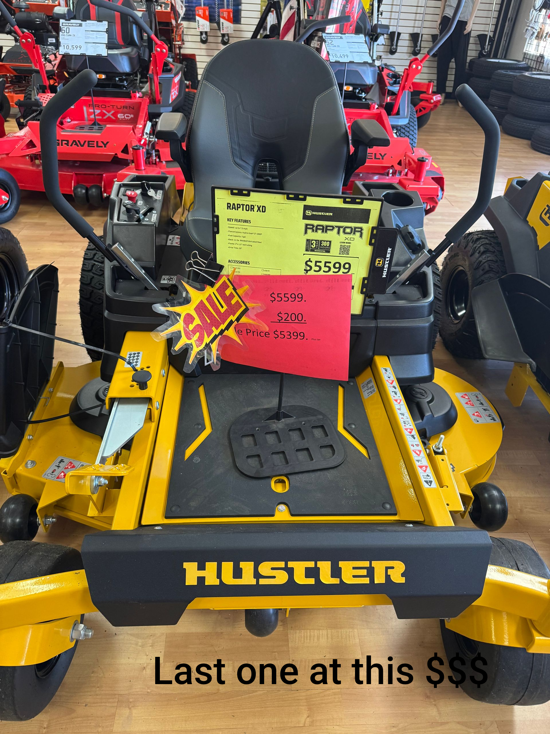Hustler Raptor X 54" 3 left at the sale price of $4099 each